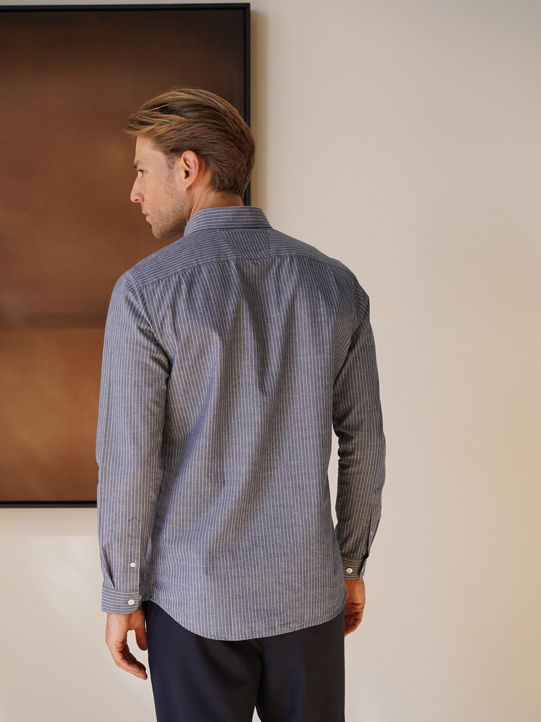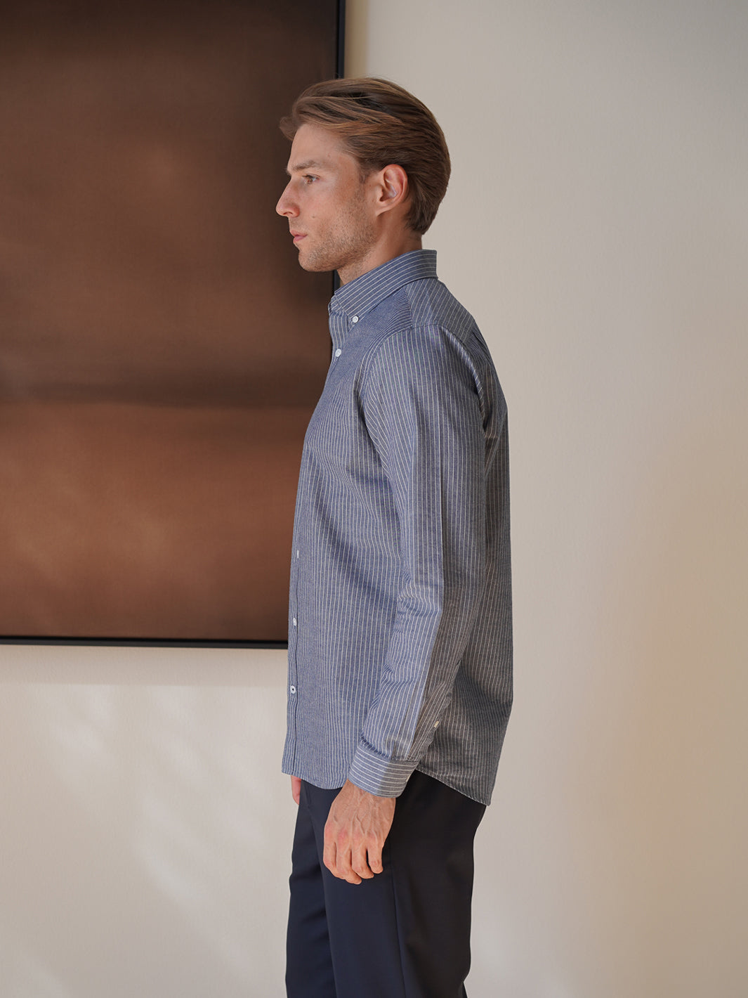 The Asuwere Button Down delivers understated sophistication in a midweight striped cotton. Cut with a regular fit and classic button-down collar, it transitions seamlessly from casual weekends to polished workdays. The fabric strikes a balance between comfort and structure, while the subtle stripe adds visual interest without demanding attention. Layer it over a tee or wear it solo - this is a wardrobe staple built for versatility and longevity.